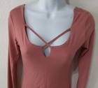 Popular Basics Womens Off Pink Long Sleeve Dress Top Strap Neck Size Small