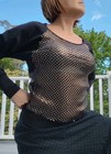 Isaac Mizrahi Jersey Knit Black Blouse S Top Gold Sequin Pullover Long Sleeve