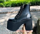 Women Fashion Punk Gothic Round Toe Lace Up Zipper Ankle Boots Chunky High Heel