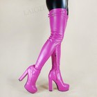 Women Thigh High Elastic Stiletto High Heels Side Zip Platform Over Knee Boots