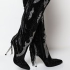 Womens Fashion Pointy Toe Diamante Tassel High Heel Over Knee Boots Shoes