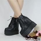 13cm Hidden Wedge Heels Womens Thicken Soled Platform Ankle Boots Lace Up Zipper