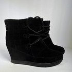 Black Suede Lace-up Wedge Ankle Booties Round Toe Solid For Women