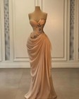 Champagne Mermaid Sequined Evening Dresses Beadings Party Satin Beads Prom Gowns