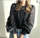 French Style Womens Long Sleeve Hollow Out Embroidery Floral Shirts Loose Top Sz