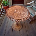Carved Wood Coffee Table, Round Mid Century Modern Accent Table