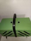Vintage Mid Century Wooden Fold Out Sewing Box Stand Jadite Green & Black Poland