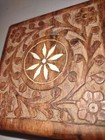 Handmade Decorative Box Inlaid Wooden Carved Floral Design Vintage 6x4x3”