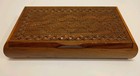 Handmade Filigree Carved Wooden Trinket Box Vintage Keepsake Wood Note Holder