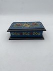 Vintage Hand Carved Floral Inlay Lined Wooden Jewelry Trinket Box Dark Wood 7x5”