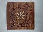 Wooden Box From India Vintage Hand Carved Wood Flower Inlay 4” X 4” X 2 1/2”