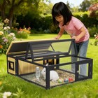 Wooden Rabbit Hutch Chicken Coop With Run - Waterproof Outdoor Cage W/ Top Door