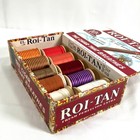 Vintage Roi Tan Cigar Box Wooden Sewing Thread Spools Reds Oranges Purples White