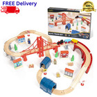 60 Piece Wooden Train Set Hardwood Track Train Bridge Thomas Brio Compatible