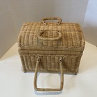Vintage Boho Rectangular Woven Wicker Rattan Basket W/locking Handles 12x10x8”