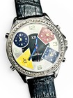 Men's 5 Time Zone Silver & Black Croc Genuine Leather Band Watch