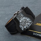 Men's Biker Halloween Skull Decor Wide Wrist Watch Casual Geniune Leather Strap