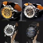 Men's Skeleton Mechanical Wrist Watch Steampunk Luxury Black Leather Stainless