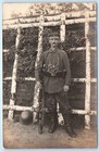 Wwi German Soldier Rifle Helmet Real Photo Postcard Rppc