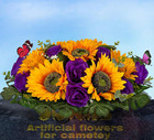 Cemetery Flowers Saddle And 2 Bouquets For Grave Decor, Silk Sunflower Rose Head