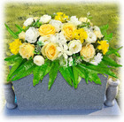 Cemetery Memorial Headstone Saddle Silk Flower Arrangement Redish Yellow